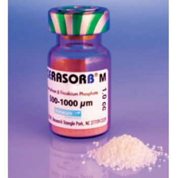 Cerasorb M is a pure phase B-TCP, beta-tricalcium phosphate bone graft, that produces bone quality comparable to a patients’ harvested bone.