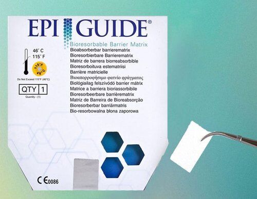 EpiGuide is a resorbable, synthetic dental membrane that assists in the regeneration of bone and periodontal support tissues.