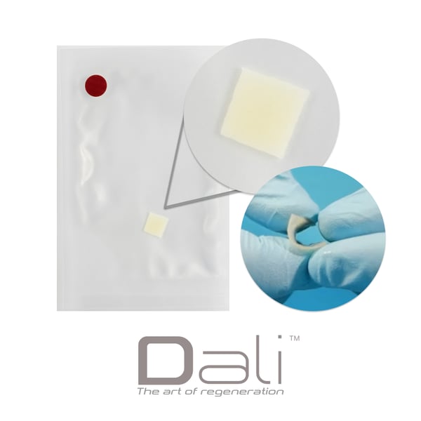 The DALI Flex Graft is a 1 mm thick demineralized cortical allograft that when hydrated, becomes flexible and easily adapts to graft sites that would be difficult to treat with particulate or putty grafts. These characteristics make DALI Flex Graft ideally suited for the repair of shallow bone defects or bone loss. Please note that the DALI Flex Graft was previously sold under the brand Pentos Flex.