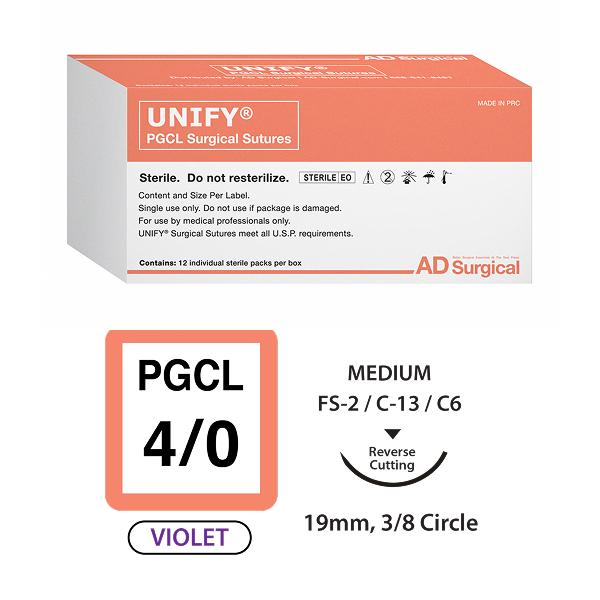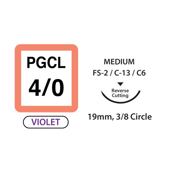 PGCL Surgical Sutures, Violet, Size 4/0, 18in Thread with 19mm 3/8 Circle R/C Needle. Box of 12.