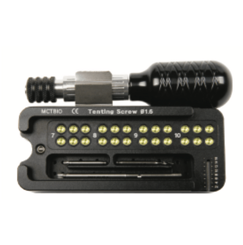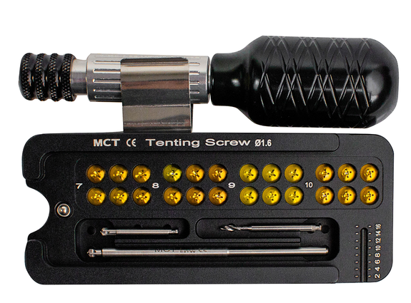 Tenting screw kit consisting of long length, specialized screws used for tenting during bone regeneration procedures. Big savings! For membrane fixation or bone fixation, please see our Titanium Membrane Fixation Screw Kit